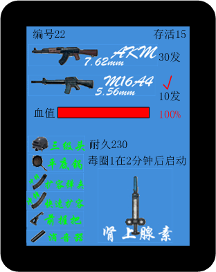 優(yōu)勢(shì)四:槍上自帶液晶大屏幕,所有信息一目了然 ,銘恒吃雞裝備采用大尺寸液晶顯示屏顯示槍支彈數(shù),血量,護(hù)具盔甲,毒圈子,游戲進(jìn)度(剩余人數(shù)一目了然;反應(yīng)速度快,不用看手機(jī)