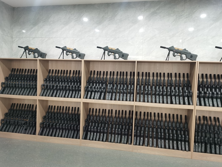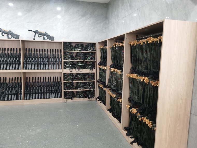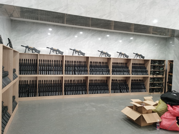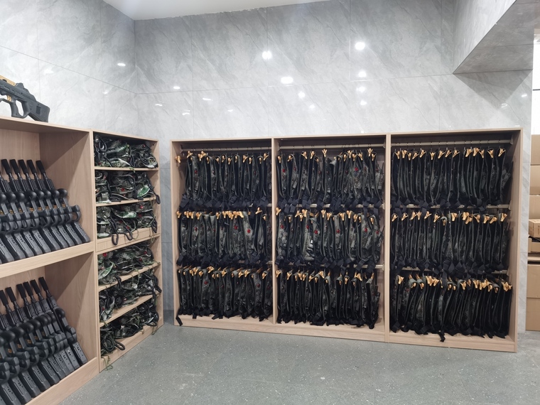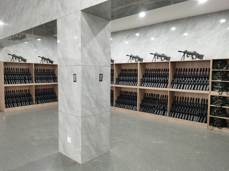 260套真人CS裝備整齊劃一的擺放在接待大廳的設(shè)備架上,氣勢宏大,是目前國內(nèi)規(guī)模最大,檔次最高的真人CS對抗項目了。